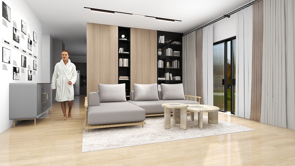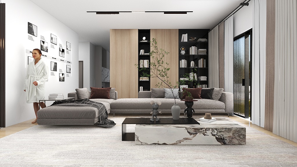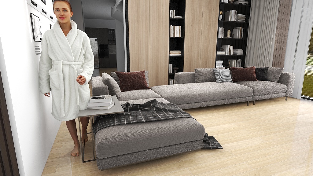 The big sofa does look good in the space. However, there is only 100mm walkway space and we may accidentally knock the sofa everyday trying to maneuver around it.